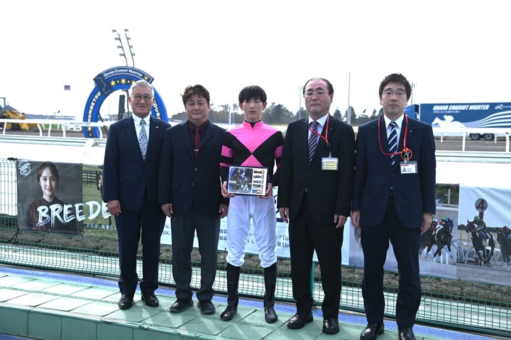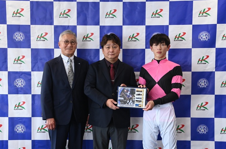 なお、フレーム切手の発売を記念して、本日門別競馬場の3階来賓室にて、贈呈式が行われました。