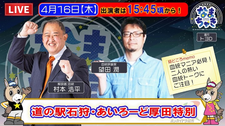 いよいよホッカイドウ競馬が開幕します。 4年目を迎える「なまちゃき」は、今年もさらにパワーアップしてお届けします。今回は、開幕を盛り上げる 「なまちゃきLIVE」出演者 をご紹介します。